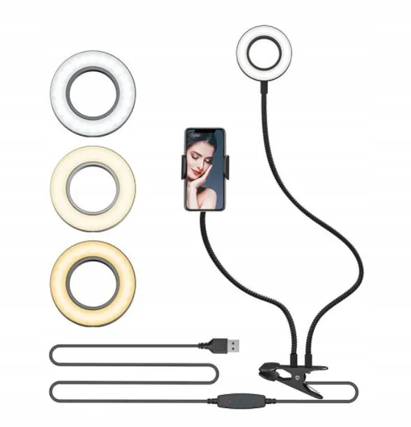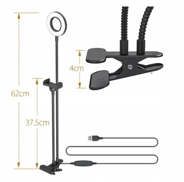 Urządzenie wyróżnia się niezwykle przemyślaną konstrukcją. Okrągła lampka o średnicy 26 cm składa się z 48 koralików LED, które zapewniają równomierne oświetlenie. Szerokość zacisku można regulować od 6 cm do nawet 8,5 cm, dzięki czemu bez problemu umieścisz w nim swojego smartfona. Urządzenie jest łatwe w montażu i zasilane przy pomocy standardowego kabla USB - korzystanie z jego zalet nie stanowi więc najmniejszego nawet wyzwania.